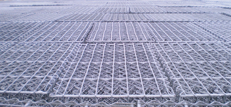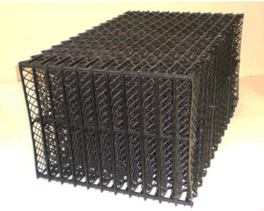 Изготавливается ороситель ОС ПНД методом литья под давлением из морозоустойчивых композиций полиэтилена низкого давления или полипропилена – в зависимости от условий эксплуатации. Габаритные размеры типового блока с площадью орошения 0,5 кв.м: А=0,9 м, В=0,56 м, h=0,42 м. По требованию заказчика возможны другие размеры. Установка блоков оросителя БОС ПНД на градирне, как правило, производится на одной опорной конструкции в два слоя непосредственно друг на друга с поворотом вокруг вертикальной оси на 90˚.