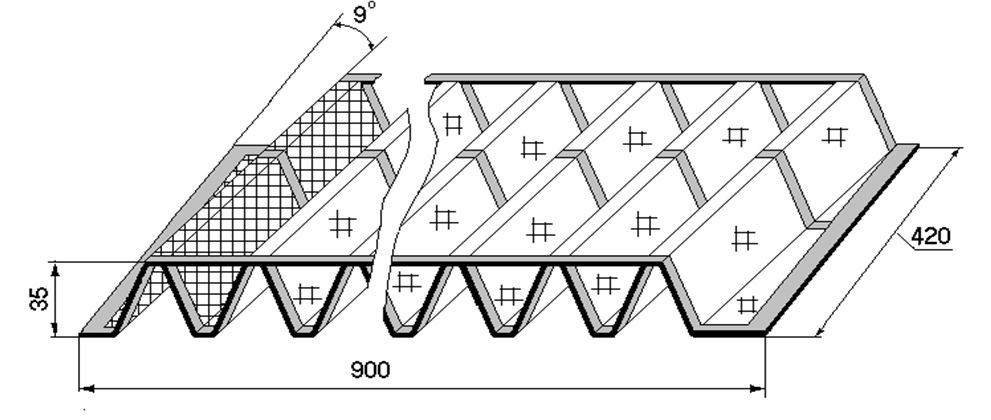 - для загрязненных водооборотов, с целью снижения возможности зарастания оросителя, рекомендуется применение разреженных блоков оросителя марки БОС ПНД II, в которых элементы собираются на трубчатых проставках с наклоном к основанию.